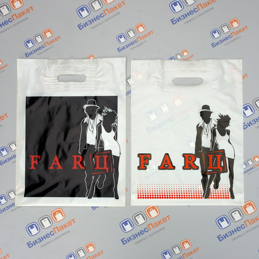 Пакеты с вырубной ручкой из ПВД - отличное решение для брендовых магазинов одежды или спортивных товаров. Часто это пакеты средних размеров 40х50+3 см толщиной от 50 мкм