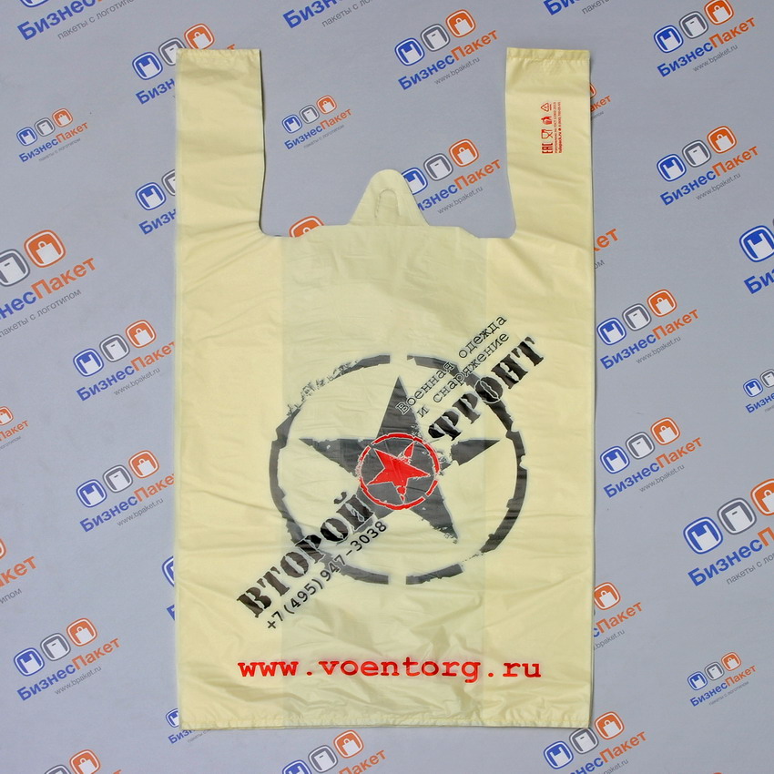 Наиболее популярным решением являются большие горизонтальные пакеты с вырубной ручкой для верхней одежды размером 65х50 см с увеличенной донной сладкой (от 5 см) и укрепленной ручкой. Материалом служит гладкий и блестящий ПВД толщиной от 65 мкм либо более экономичный матовый и шуршащий ПСД толщиной от 45 мкм. Такие пакеты с логотипом являются отличными рекламными носителями и подчеркивают солидность бренда.