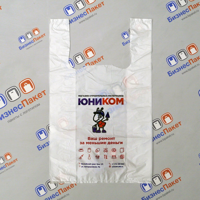 Фирменные пакеты Майка - самое популярное решение для магазинов стройматериалов. Эти пакеты наиболее вместительны, а для большей прочности их производят из ПНД высокой толщины от 18 до 25 мкм. Наиболее популярен средний размер пакета Майка для стройматериалов - 30х60 см.