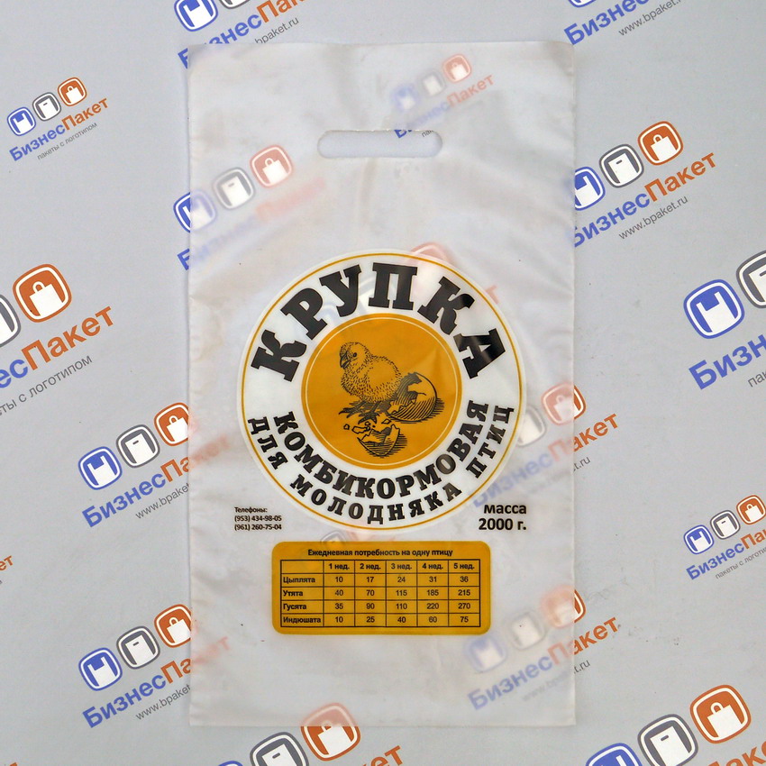- Пакеты для кур и других замороженных продуктов из ПВД со прямыми углами.